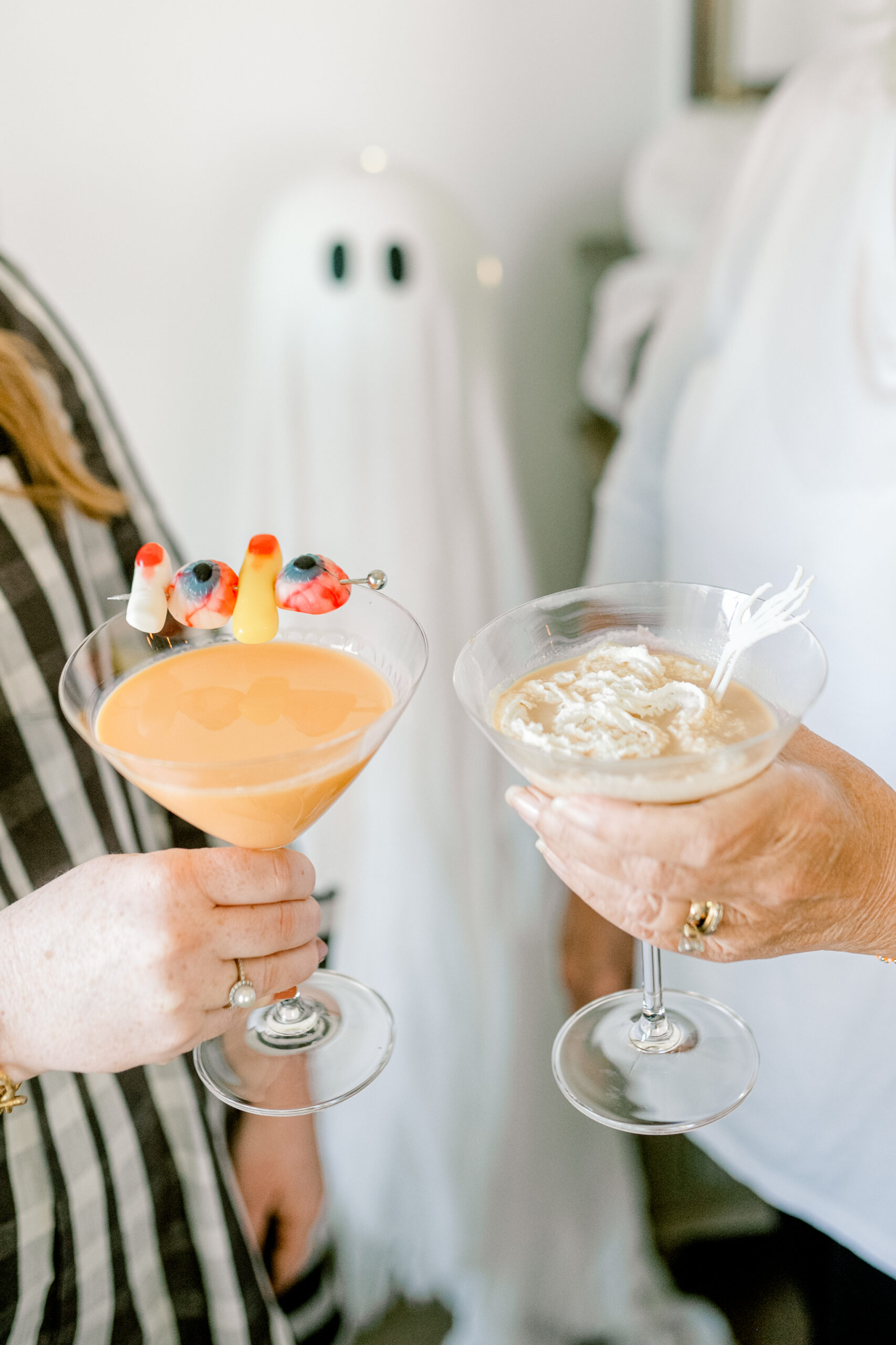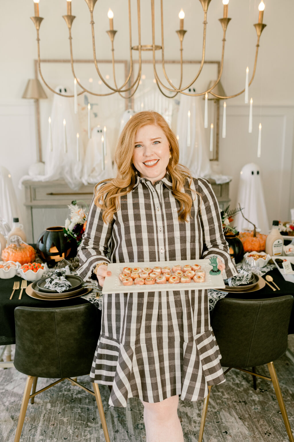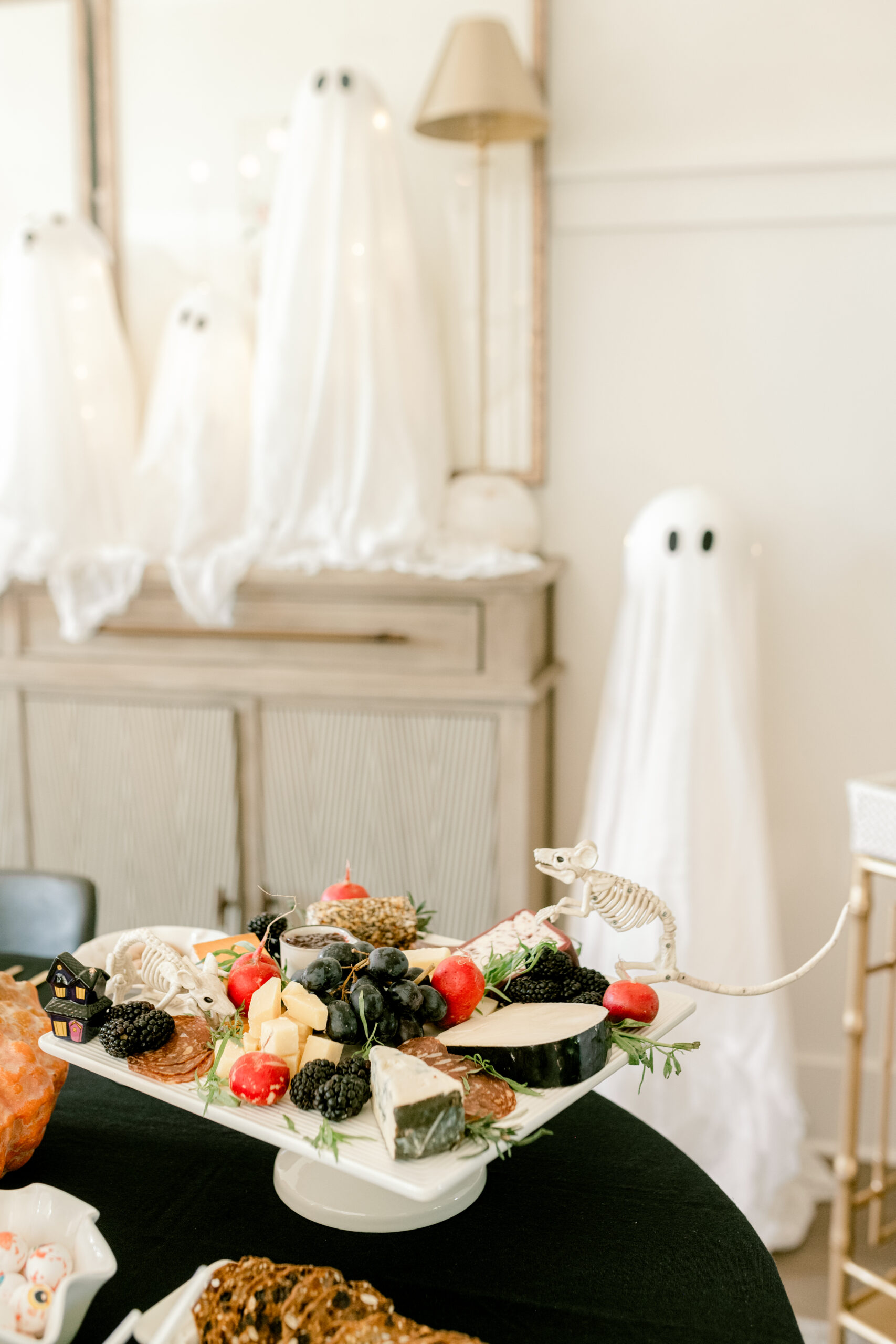 For your ghastly gathering cuisine, feast on foods with a spooky twist. Arrange a chilling charcuterie board with black grapes, blackberries, and chorizo pepperonis. Choose cheeses with dark colored rinds for an eerie effect. Mouse skeletons scavenging for scraps make an absolutely exquisite touch for dinner decoration. Spinach dip graves marked with cracker headstones are a simple yet a nod to the theme. The eyeball mozzarella bites are easy to make and a scream to serve as you take in guests’ bewildered reactions. Stock your sweets tray with traditional Halloween treats and goodies from the grocery store.