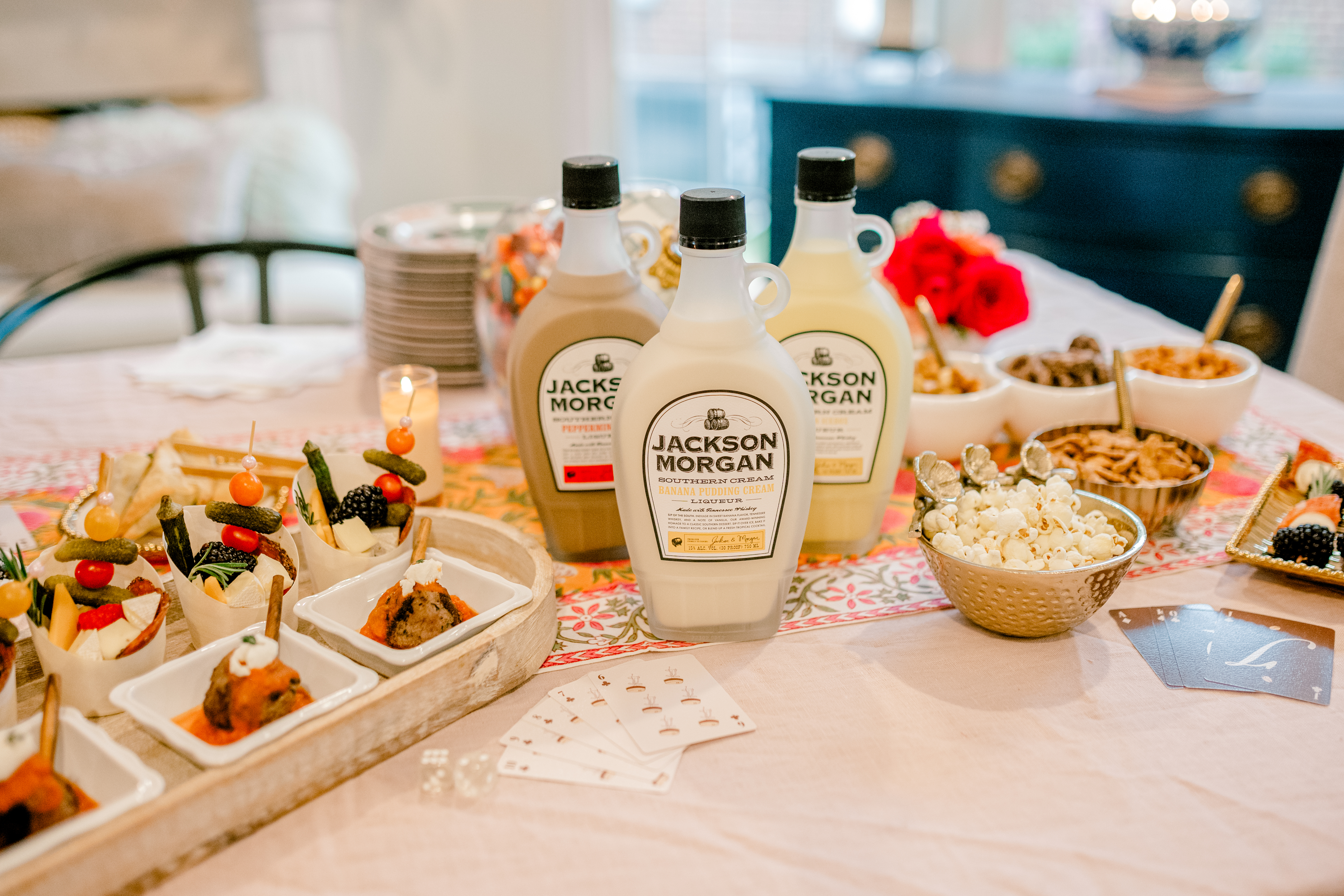 Lean into the theme and make the cocktails part of the experience. A curated menu with playful names tied to the game. Each can feature a different Jackson Morgan Southern Cream flavor, giving guests options.