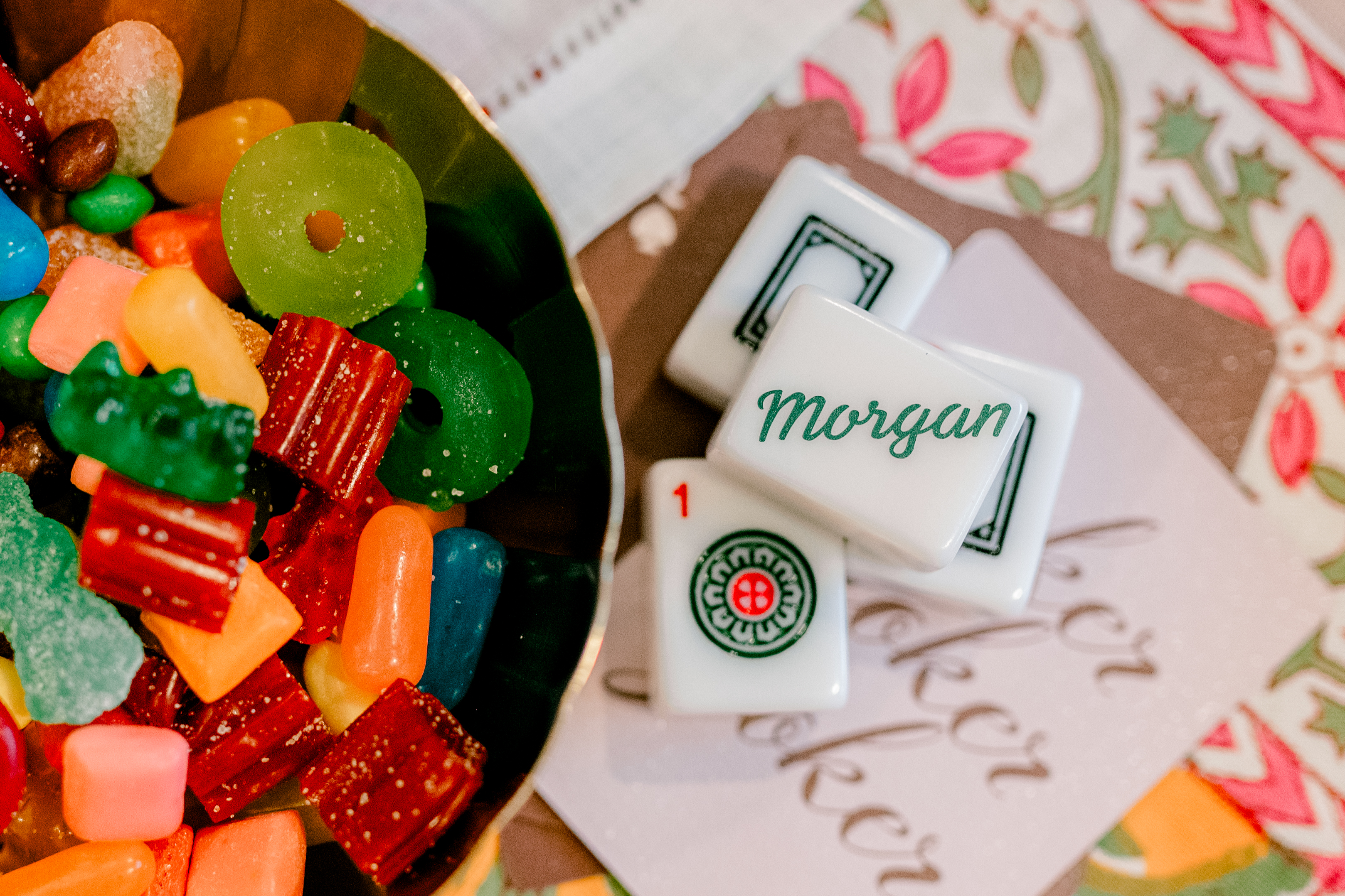 It is the little details that make a gathering feel special. For this party, custom mahjong tiles with each guest’s name added a personalized touch and doubled as a keepsake to take home.