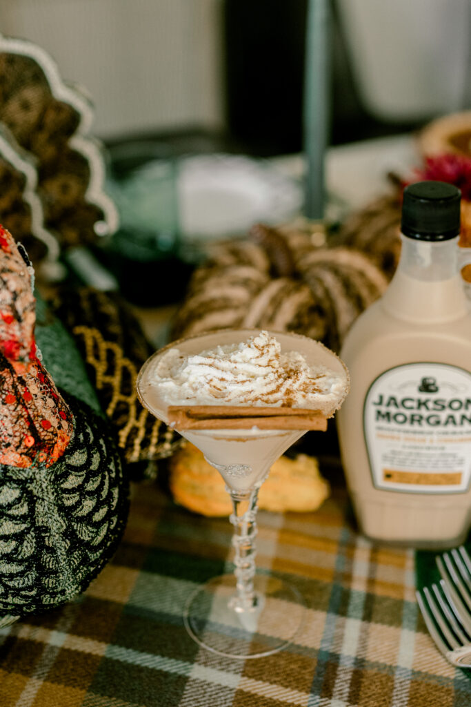 This enticing cocktail may look fancy, but the brown sugar and cinnamon based beverage comes together with just a handful of basic ingredients. A little maple syrup and brown sugar from the pantry create the coated rim that elevates the appearance. Next, cinnamon whiskey shaken with Jackson Morgan Southern Cream in Brown Sugar and Cinnamon forms the body of the bold, flavorsome martini. Complete the aesthetic with a cinnamon stick and heaping spoonful of smooth whipped cream.